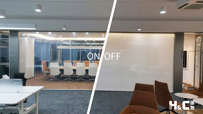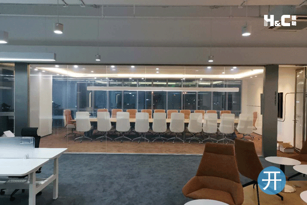 地點:廣州市天河區海安路 應用:調光玻璃辦公室隔斷